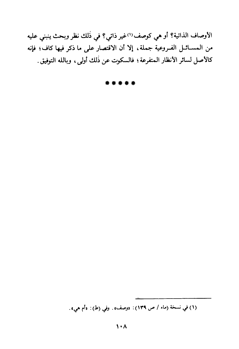1 في نسخة "ماء/ ص 139": "وصف". وفي "ط": "أم هي".