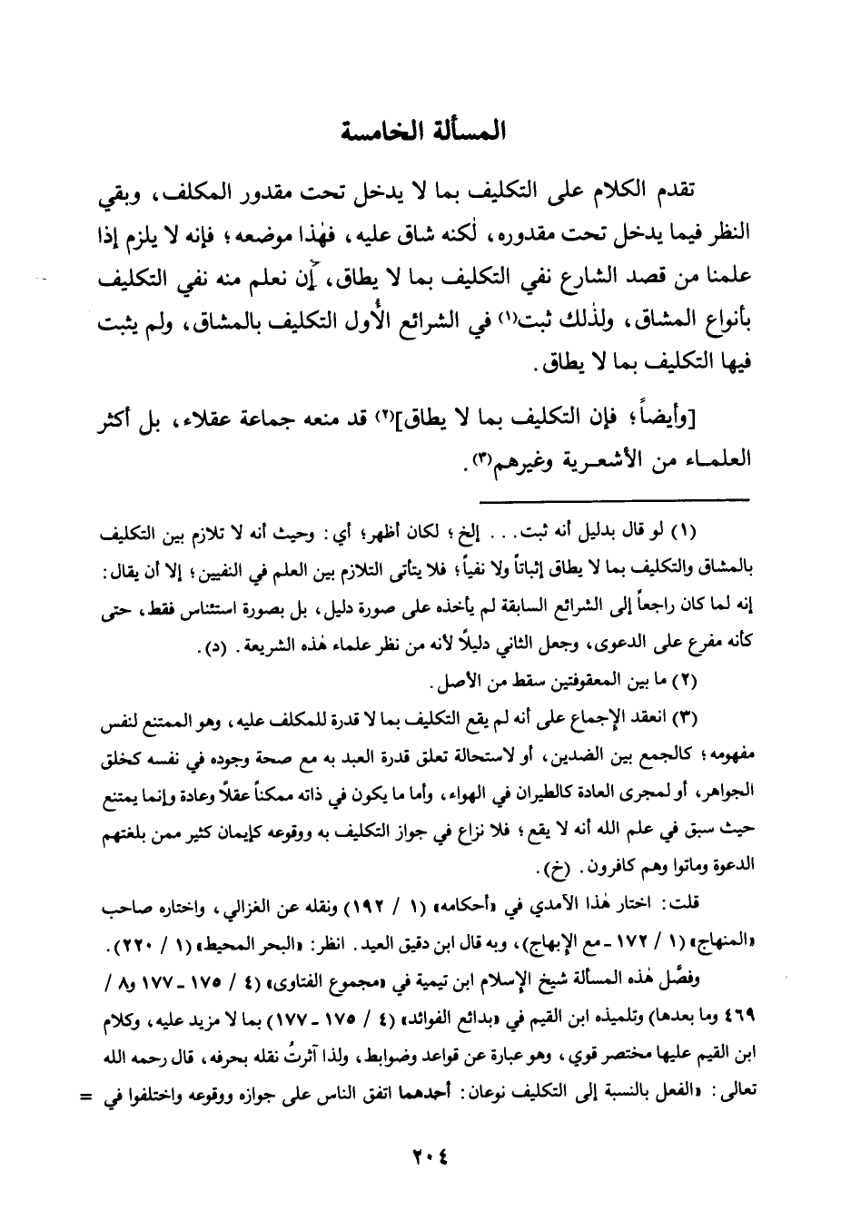 [وَأَيْضًا، فَإِنَّ التَّكْلِيفَ بِمَا لَا يُطَاقُ] 2 قَدْ مَنَعَهُ جَمَاعَةٌ عُقَلَاءُ، بَلْ أَكْثَرُ الْعُلَمَاءِ من الأشعرية وغيرهم3.