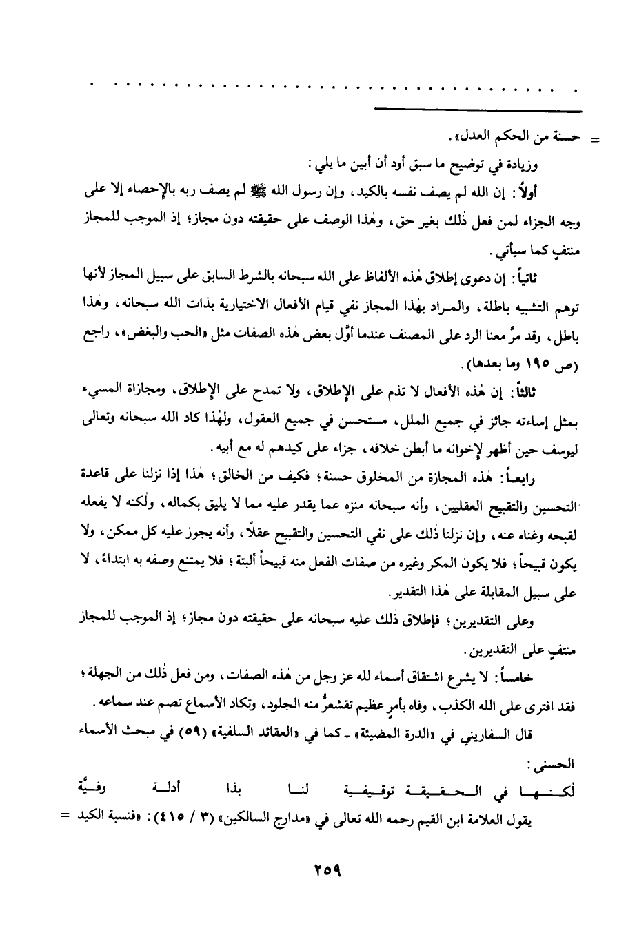 قال السفاريني في "الدرة المضيئة"- كما في "العقائد السلفية" "59" في مبحث الأسماء الحسنى: