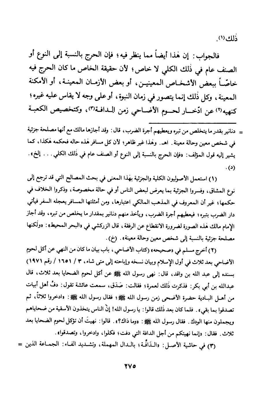 2 أخرج مسلم في "صحيحه" "كتاب الأضاحي، باب بيان ما كان من النهي عن أكل لحوم الأضاحي بعد ثلاث في أول الإسلام وبيان نسخه وإباحته إلى متى شاء 3/ 1651/ رقم 1971" بسنده إلى عبد عبد الله بن واقد، قال: نهى رسول الله صلى الله عليه وسلم عن أكل لحوم الضحايا بعد ثلاث، قال عبد الله بن أبي بكر: فذكرت ذلك لعمرة، فقالت: صدق، سمعت عائشة تقول: دَفَّ أهل أبيات من أهل البادية حضرة الأضحى زمن رسول الله صلى الله عليه وسلم، فقال رسول الله صلى الله عليه وسلم: "ادخروا ثلاثا، ثم تصدقوا بما بقي". فلما كان بعد ذلك قالوا: يا رسول الله! إن الناس يتخذون الأسقية من ضحاياهم ويحملون منها الودك. فقال رسول الله صلى الله عليه وسلم: "وما ذاك؟ ". قالوا: نهيت أن تؤكل لحوم الضحايا بعد ثلاث. فقال: "إنما نهيتكم من أجل الدافة التي دفت، فكلوا وادخروا، وتصدقوا".