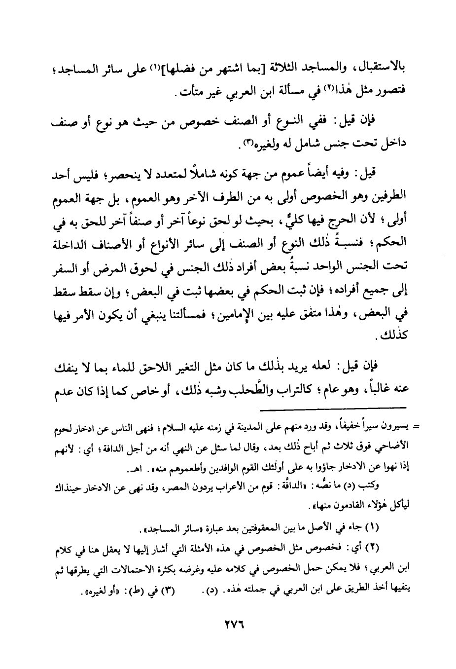 2 أي: فخصوص مثل الخصوص في هذه الأمثلة التي أشار إليها لا يعقل هنا في كلام ابن العربي، فلا يمكن حمل الخصوص في كلامه عليه وغرضه بكثرة الاحتمالات التي يطرقها ثم ينفيها أخذ الطريق على ابن العربي في جملته هذه. "د".