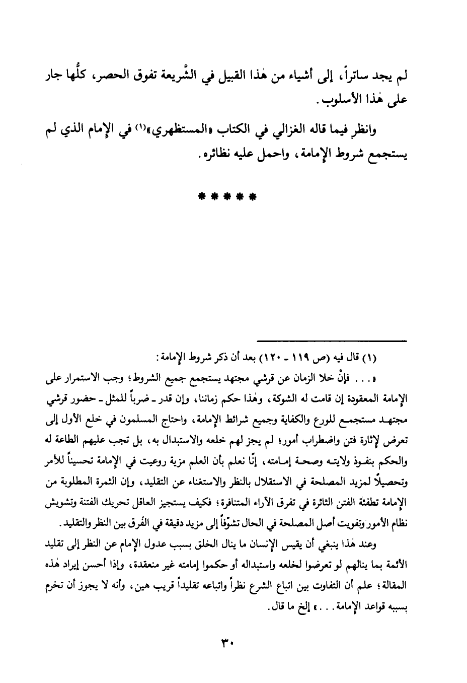 1 قال فيه "ص 119- 120" بعد أن ذكر شروط الإمامة: