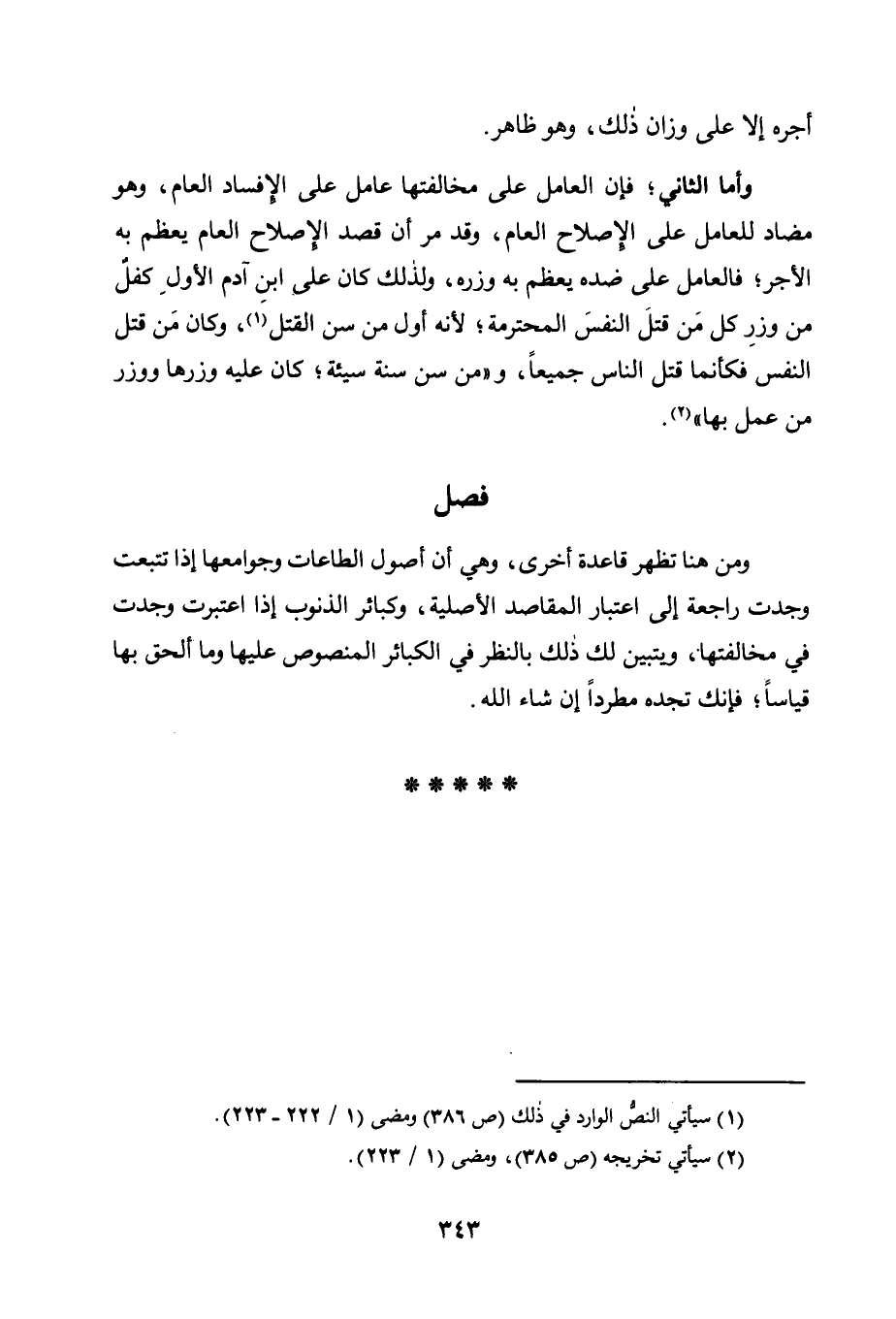 وَمِنْ هُنَا تَظْهَرُ قَاعِدَةٌ أُخْرَى، وَهِيَ أَنَّ أُصُولَ الطَّاعَاتِ وَجَوَامِعَهَا إِذَا تُتُبِّعَتْ وُجِدَتْ رَاجِعَةً إِلَى اعْتِبَارِ الْمَقَاصِدِ الْأَصْلِيَّةِ، وَكَبَائِرُ الذُّنُوبِ إِذَا اعْتُبِرَتْ وُجِدَتْ فِي مُخَالَفَتِهَا، وَيَتَبَيَّنُ لك ذلك بِالنَّظَرِ فِي الْكَبَائِرِ الْمَنْصُوصِ عَلَيْهَا وَمَا أُلْحِقَ بِهَا قِيَاسًا، فَإِنَّكَ تَجِدُهُ مطَّرِدًا إِنْ شَاءَ الله.