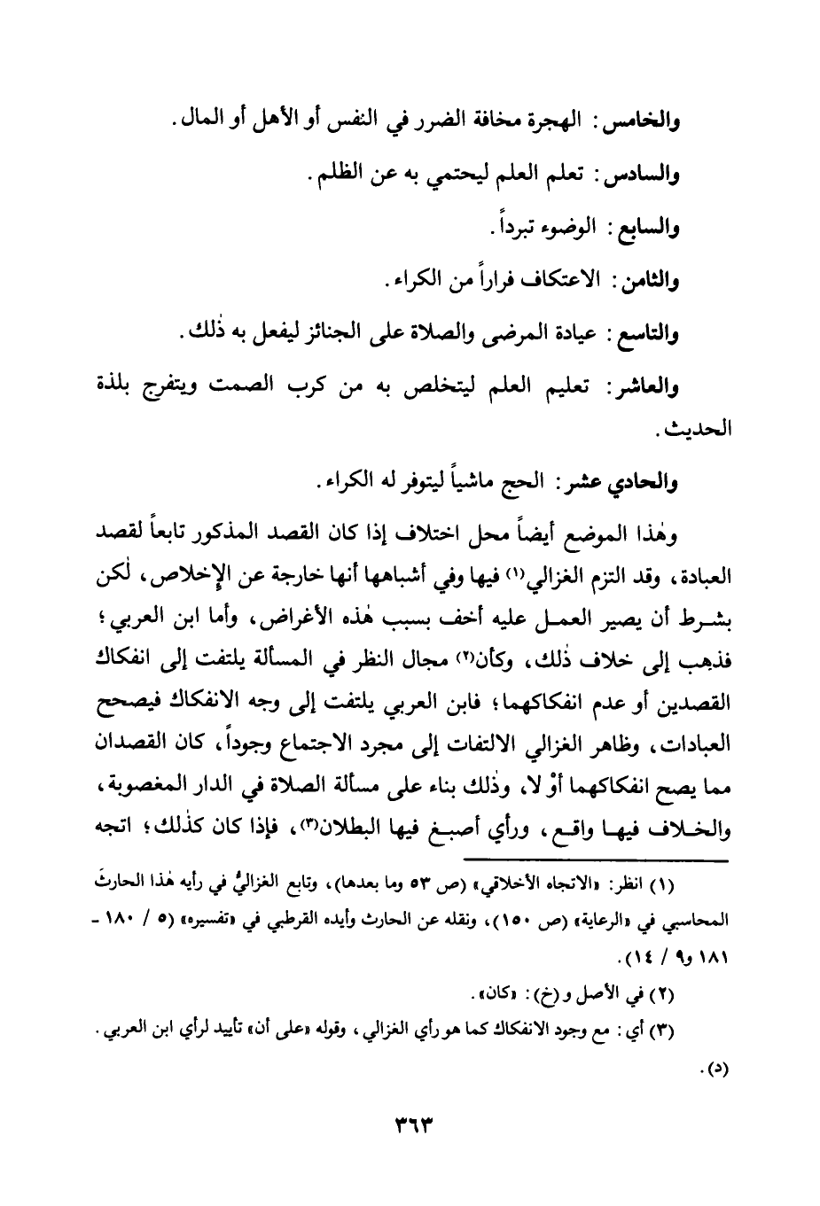 1 انظر: "الاتجاه الأخلاقي" "ص53 وما بعدها"، وتابع الغزالي في رأيه هذا الحارث المحاسبي في "الرعاية" "ص150"، ونقله عن الحارث وأيده القرطبي في "تفسيره" "5/ 180-181 و9/ 14".