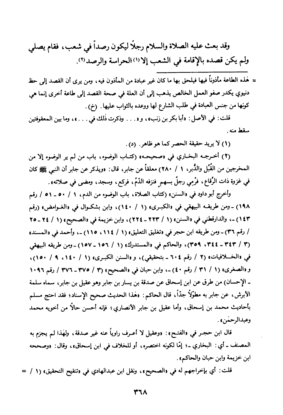 وَقَدْ بَعَثَ عَلَيْهِ الصَّلَاةُ وَالسَّلَامُ رَجُلًا لِيَكُونَ رَصَدًا فِي شِعْبٍ، فَقَامَ يُصَلَّى وَلَمْ يَكُنْ قَصْدُهُ بِالْإِقَامَةِ فِي الشِّعْبِ إِلَّا1 الْحِرَاسَةَ وَالرَّصْدِ2.