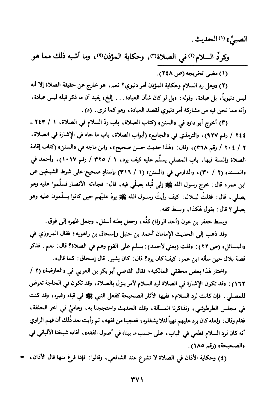 وَكَرَدِّ السَّلَامِ2 فِي الصَّلَاةِ3، وَحِكَايَةِ المؤذن4، وما أشبه ذلك مما هو