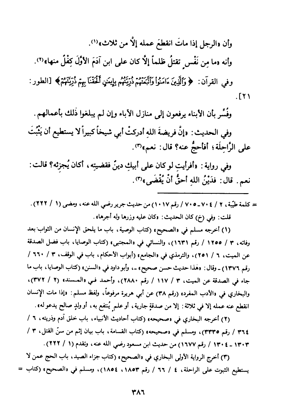 وَأَنْ "الرَّجُلَ إِذَا مَاتَ انْقَطَعَ عَمَلُهُ إِلَّا مِنْ ثَلَاثٍ" 1