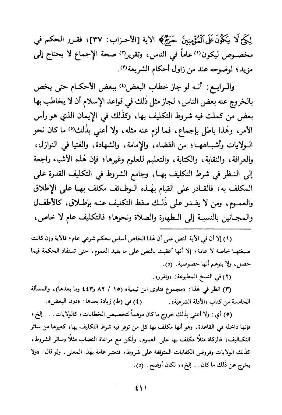 لِكَيْ لَا يَكُونَ عَلَى الْمُؤْمِنِينَ حَرَجٌ} الْآيَةَ [الْأَحْزَابِ: 37] ، فَقَرَّرَ الْحُكْمَ فِي مَخْصُوصٍ لِيَكُونَ1 عَامًا في الناس، وتقرير2 صِحَّةِ الْإِجْمَاعِ لَا يَحْتَاجُ إِلَى مَزِيدٍ لِوُضُوحِهِ عِنْدَ مَنْ زَاوَلَ أَحْكَامَ الشَّرِيعَةِ3.