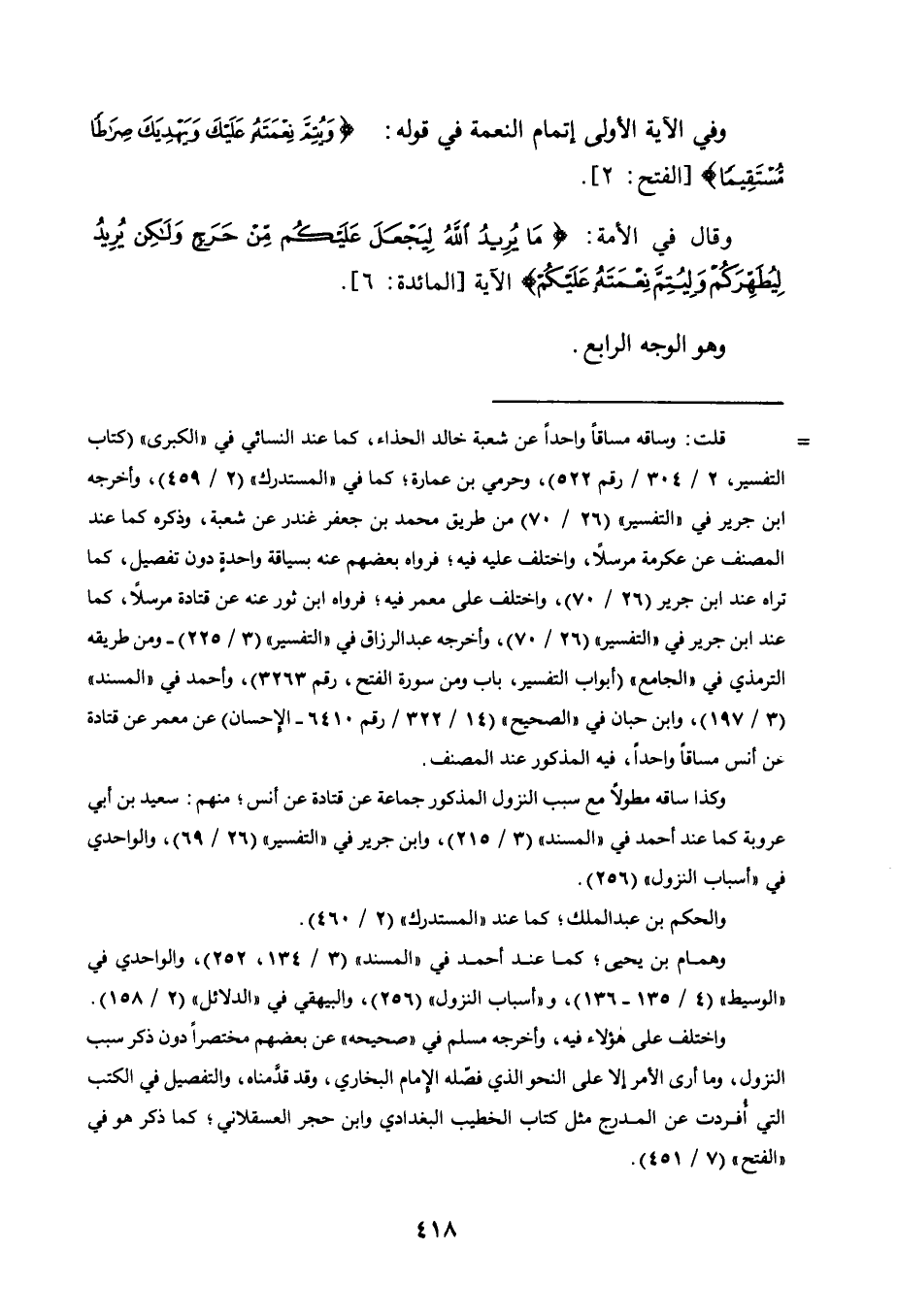 واختلف على هؤلاء فيه، وأخرجه مسلم في "صحيحه" عن بعضهم مختصرا دون ذكر سبب النزول، وما أرى الأمر إلا على النحو الذي فصله الإمام البخاري، وقد قدمناه، والتفصيل في الكتب التي أفردت عن المدرج مثل كتاب الخطيب البغدادي وابن حجر العسقلاني، كما ذكر هو في "الفتح" "7/ 451".
