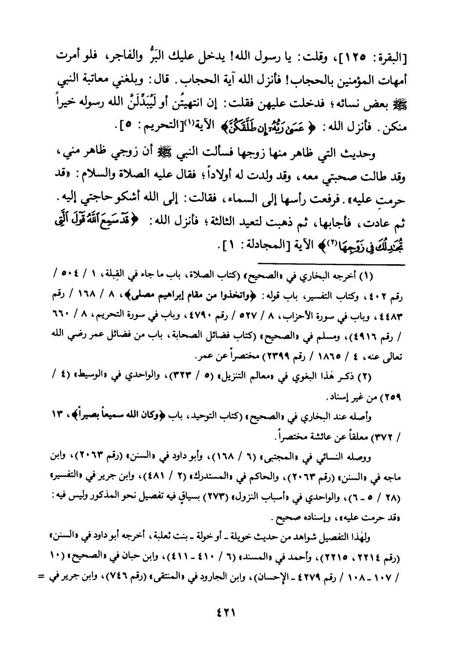 1 أخرجه البخاري في "الصحيح" "كتاب الصلاة، باب ما جاء في القبلة 1/ 504/ رقم 402، وكتاب التفسير باب قوله: {وَاتَّخِذُوا مِنْ مَقَامِ إِبْرَاهِيمَ مُصَلّى} 8/ 168/ رقم 4483، وباب في سورة الأحزاب 8/ 527/ رقم 4790، وباب في سورة التحريم 8/ 660 / رقم 4916"، ومسلم في "الصحيح" "كتاب فضائل الصحابة، باب من فضائل عمر رضي الله تعالى عنه 4/ 1865/ رقم 2399" مختصرا عن عمر.