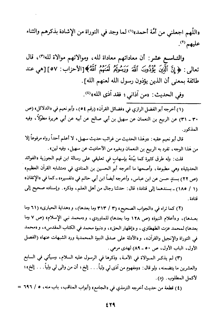 2 كما تراه في "الجواب الصحيح" "3/ 313 وما بعدها"، و"هداية الحيارى" "61 وما بعدها"، و"أعلام النبوة" "ص128 وما بعدها" للماوردي، و"محمد نبي الإسلام" "ص7 وما بعدها" لمحمد عزت الطهطاوي، و"إظهار الحق"، و"نبوة محمد في الكتاب المقدس"، و"محمد في التوراة والإنجيل والقرآن"، و"الأدلة على صدق النبوة المحمدية ورد الشبهات عنها" "الفصل الأول، الباب الأول، ص50-89" لهدى مرعي.
