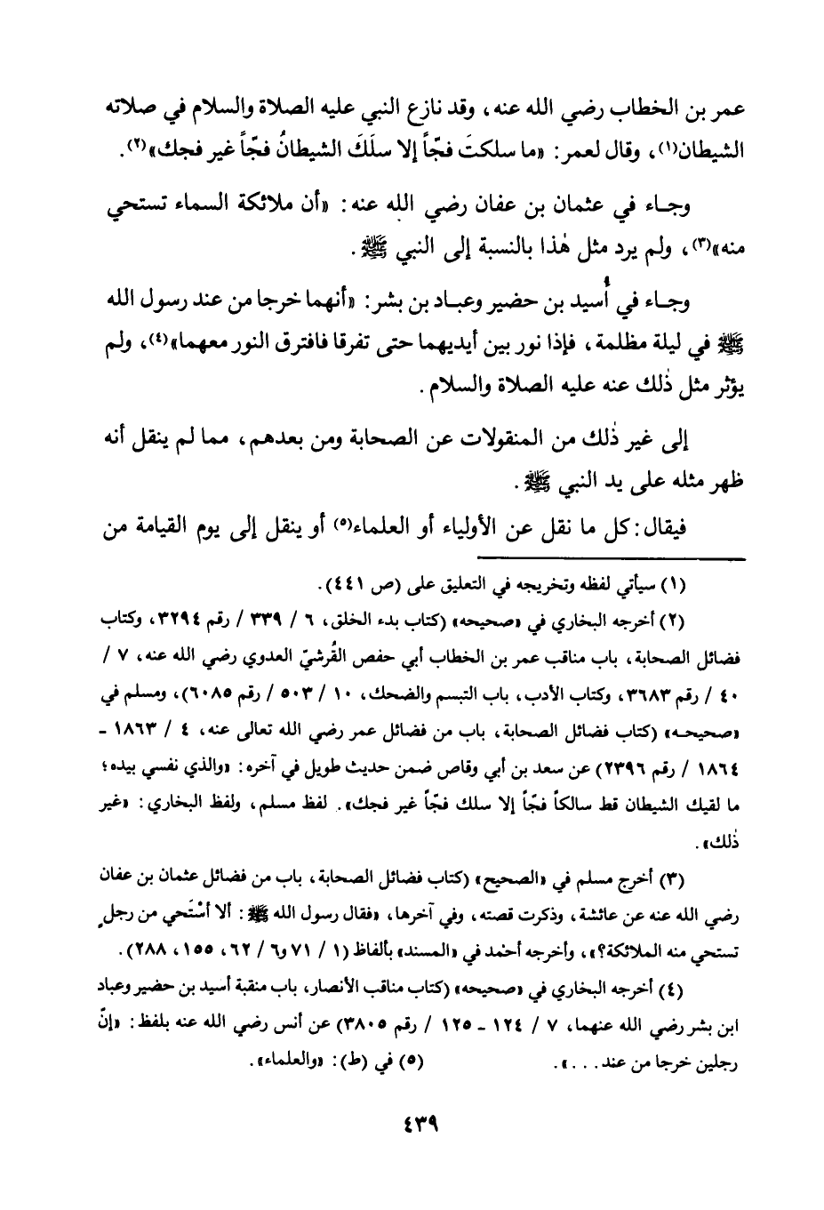 إِلَى غَيْرِ ذَلِكَ مِنَ الْمَنْقُولَاتِ عَنِ الصَّحَابَةِ وَمَنْ بَعْدَهُمْ، مِمَّا لَمْ يُنْقَلْ أَنَّهُ ظَهَرَ مِثْلُهُ عَلَى يَدِ النَّبِيِّ صَلَّى اللَّهُ عَلَيْهِ وَسَلَّمَ.