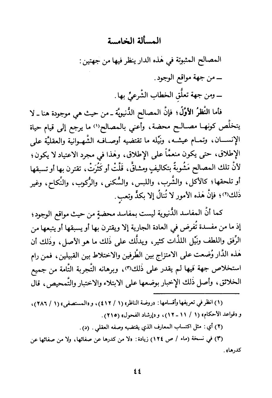 الْمَصَالِحُ الْمَثْبُوتَةُ فِي هَذِهِ الدَّارِ يُنْظَرُ فِيهَا مِنْ جِهَتَيْنِ: