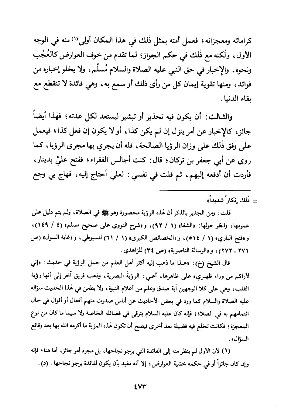 قلت: ومن الجدير بالذكر أن هذه الرؤية محصورة وهو صلى الله عليه وسلم في الصلاة، ولم يتم دليل على عمومها، وانظر حولها: "الشفا" "1/ 92"، و"شرح النووي على صحيح مسلم" "4/ 149"، و"فتح الباري" "1/ 514"، و"الخصائص الكبرى" "1/ 61" للسيوطي، و"غاية السول" "ص271-272"، و"الرسالة الناصرية" "ص34" للزاهدي.