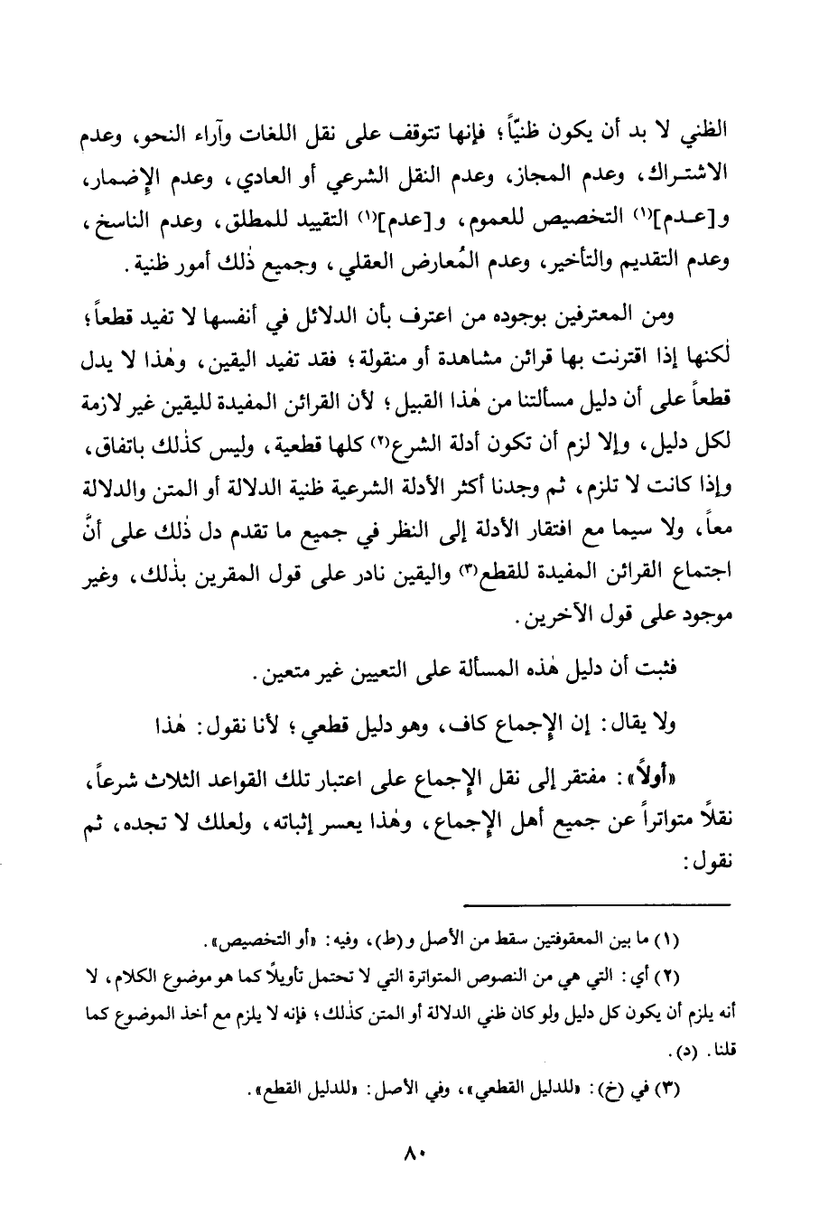 مُفْتَقِرٌ إِلَى نَقْلِ الْإِجْمَاعِ عَلَى اعْتِبَارِ تِلْكَ الْقَوَاعِدِ الثَّلَاثِ شَرْعًا، نَقْلًا مُتَوَاتِرًا عَنْ جَمِيعِ أَهْلِ الْإِجْمَاعِ، وَهَذَا يَعْسُرُ إِثْبَاتُهُ، وَلَعَلَّكَ لَا تَجِدُهُ، ثُمَّ نَقُولُ: