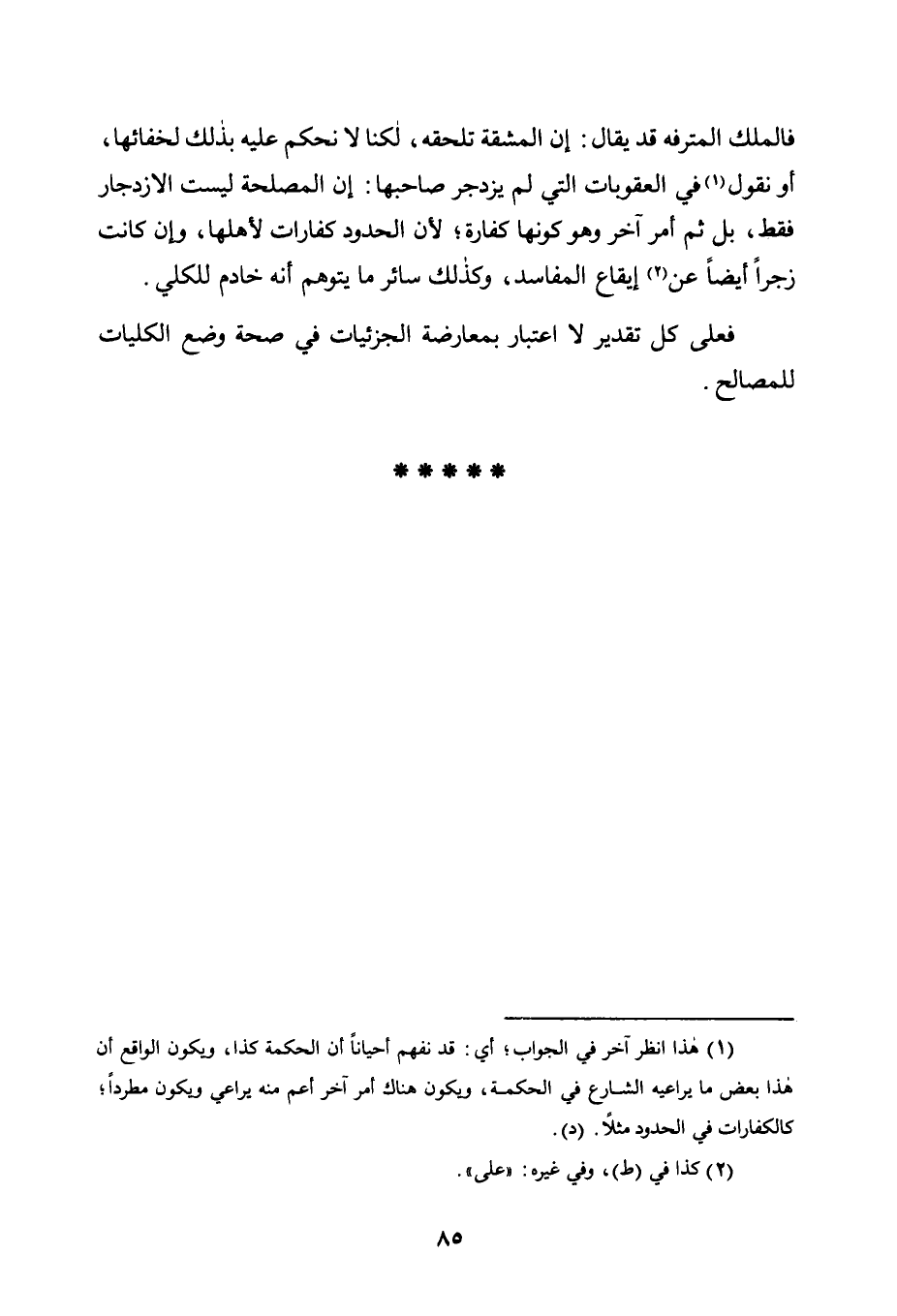 فَالْمَلِكُ الْمُتَرَفِّهُ قَدْ يُقَالُ: إِنَّ الْمَشَقَّةَ تَلْحَقُهُ، لَكُنَّا لَا نَحْكُمُ عَلَيْهِ بِذَلِكَ لِخَفَائِهَا، أَوْ نَقُولُ1 فِي الْعُقُوبَاتِ الَّتِي لَمْ يَزْدَجِرْ صَاحِبُهَا: إِنِ الْمَصْلَحَةَ لَيْسَتِ الِازْدِجَارَ فَقَطْ، بَلْ ثَمَّ أَمْرٌ آخَرُ وَهُوَ كَوْنُهَا كَفَّارَةً؛ لِأَنَّ الْحُدُودَ كَفَّارَاتٌ لِأَهْلِهَا، وَإِنْ كَانَتْ زَجْرًا أَيْضًا عَنْ2 إِيقَاعِ الْمَفَاسِدِ، وَكَذَلِكَ سَائِرُ مَا يُتَوَهَّمُ أَنَّهُ خَادِمٌ لِلْكُلِّيِّ.