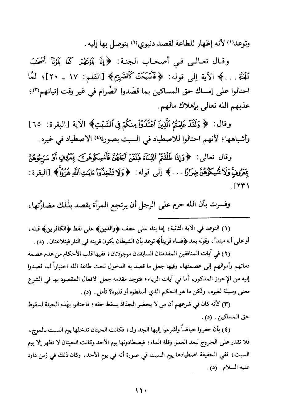 وَقَالَ: {وَلَقَدْ عَلِمْتُمُ الَّذِينَ اعْتَدَوْا مِنْكُمْ فِي السَّبْتِ} الآية [البقرة: 65] . وَأَشْبَاهَهَا؛ لِأَنَّهُمُ احْتَالُوا لِلِاصْطِيَادِ فِي السَّبْتِ بِصُورَةِ4 الِاصْطِيَادِ فِي غَيْرِهِ.