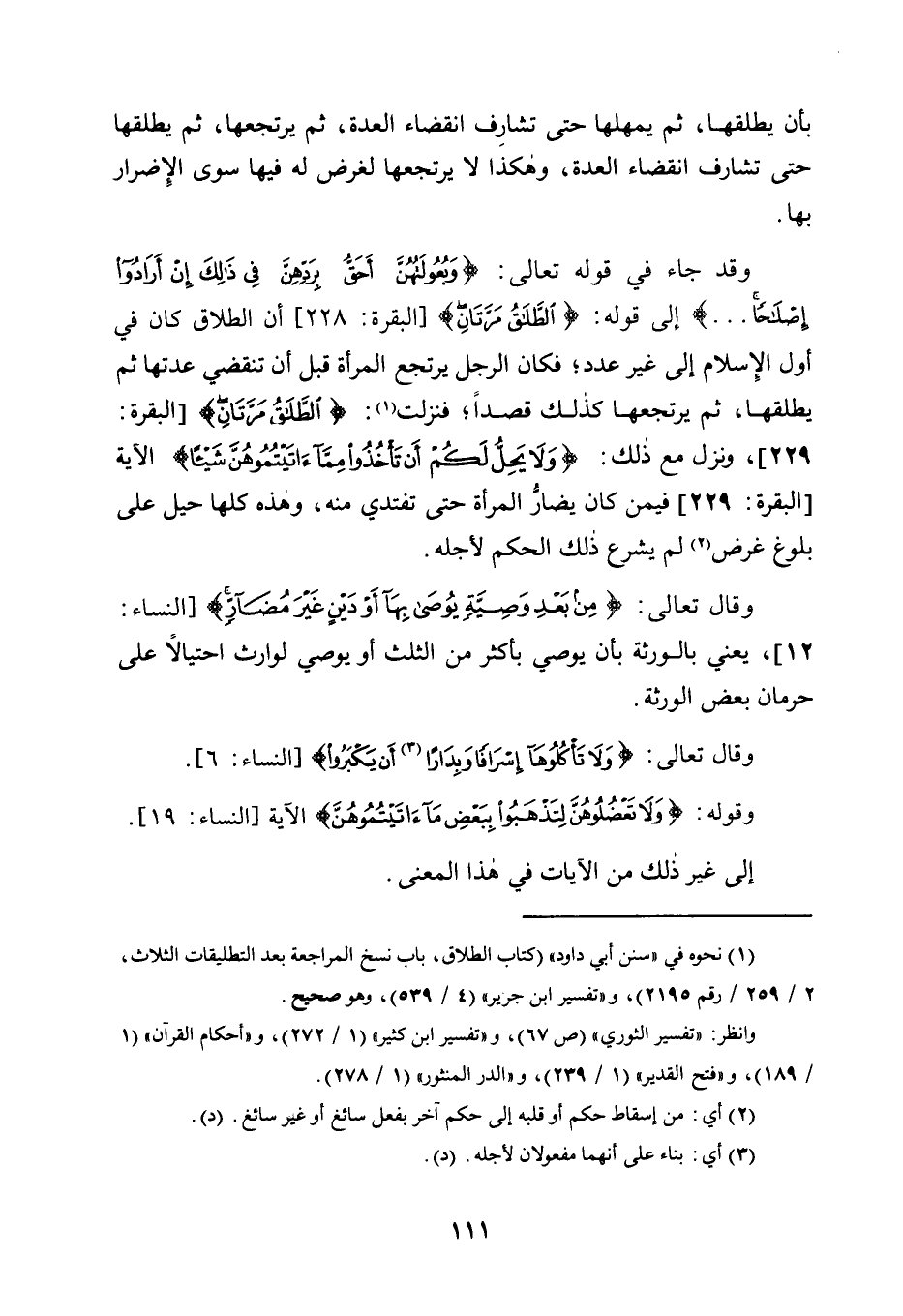 1 نحوه في "سنن أبي داود" "كتاب الطلاق، باب نسخ المراجعة بعد التطليقات الثلاث، 2/ 259/ رقم 2195"، و"تفسير ابن جرير" "4/ 539"، وهو صحيح.