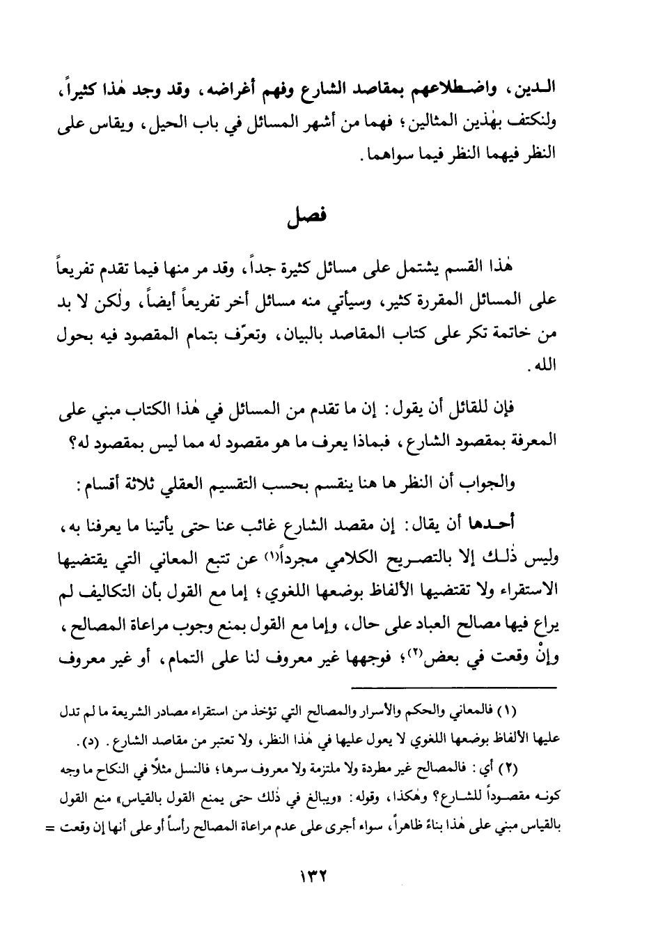 الدِّينِ، وَاضْطِلَاعِهِمْ بِمَقَاصِدِ الشَّارِعِ وَفَهْمِ أَغْرَاضِهِ، وَقَدْ وُجِدَ هَذَا كَثِيرًا ولنكتفِ بِهَذَيْنَ الْمِثَالَيْنِ؛ فَهُمَا مِنْ أَشْهَرِ الْمَسَائِلِ فِي بَابِ الْحِيَلِ، وَيُقَاسُ عَلَى النَّظَرِ فِيهِمَا النَّظَرُ فِيمَا سِوَاهُمَا.