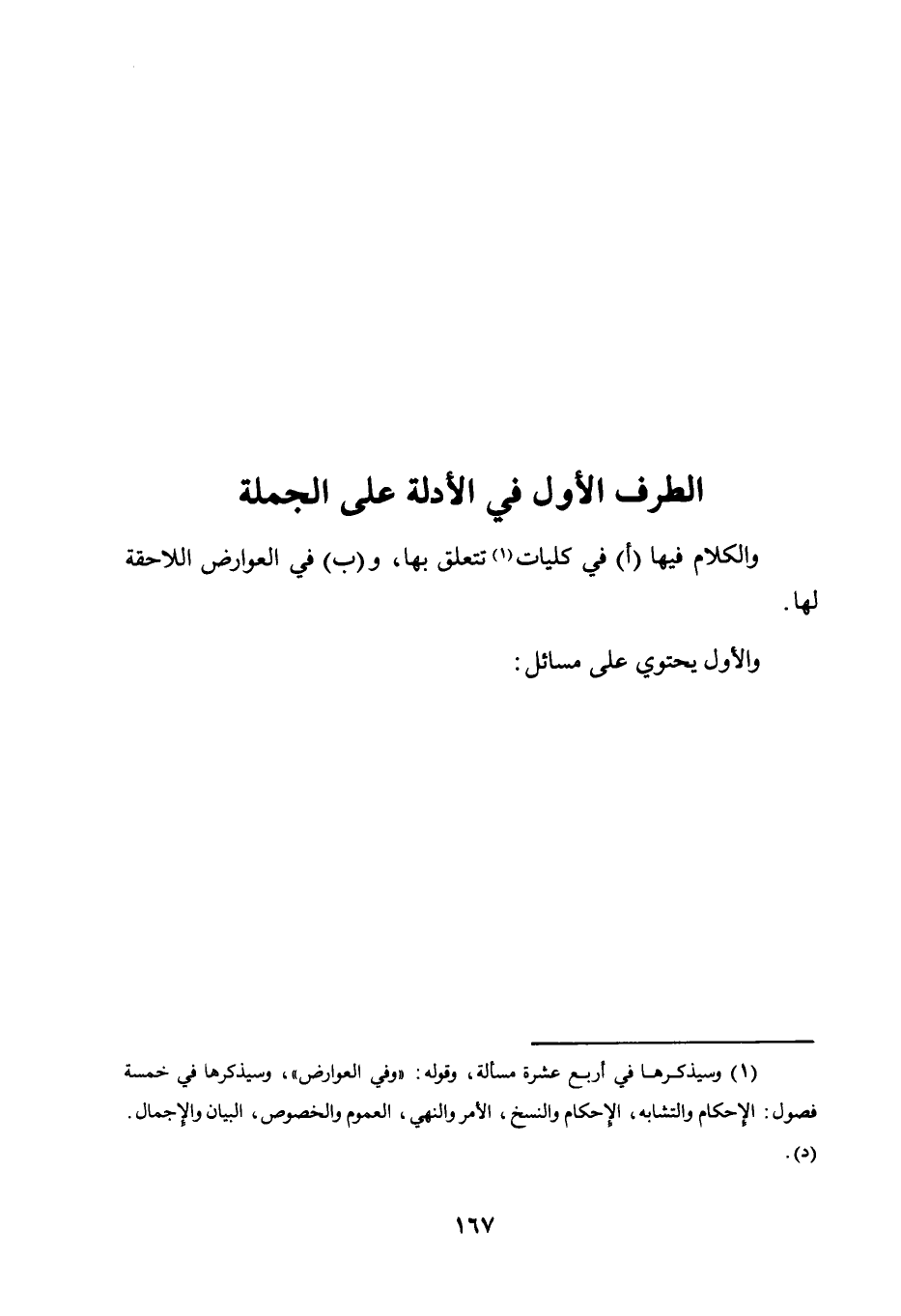 وَالْكَلَامُ فِيهَا "أ" فِي كُلِّيَّاتٍ1 تَتَعَلَّقُ بِهَا، وَ"ب" فِي الْعَوَارِضِ اللَّاحِقَةِ لَهَا.