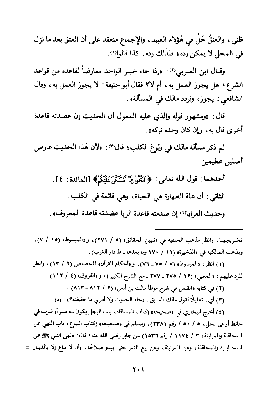 وَحَدِيثُ الْعَرَايَا4 إِنْ صَدَمَتْهُ قَاعِدَةُ الربا عضدته قاعدة المعروف".