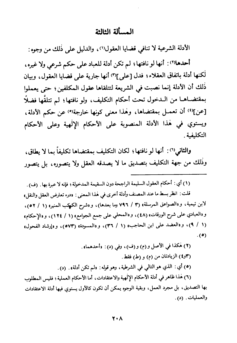 6 هذا ظاهر في أدلة الأحكام الإلهية والاعتقادات، أما الأحكام العملية؛ فليس المطلوب بها التصديق، بل مجرد العمل، وبقية الوجوه يمكن أن تكون كالأول يستوي فيها أدلة الاعتقادات والعمليات. "د".
