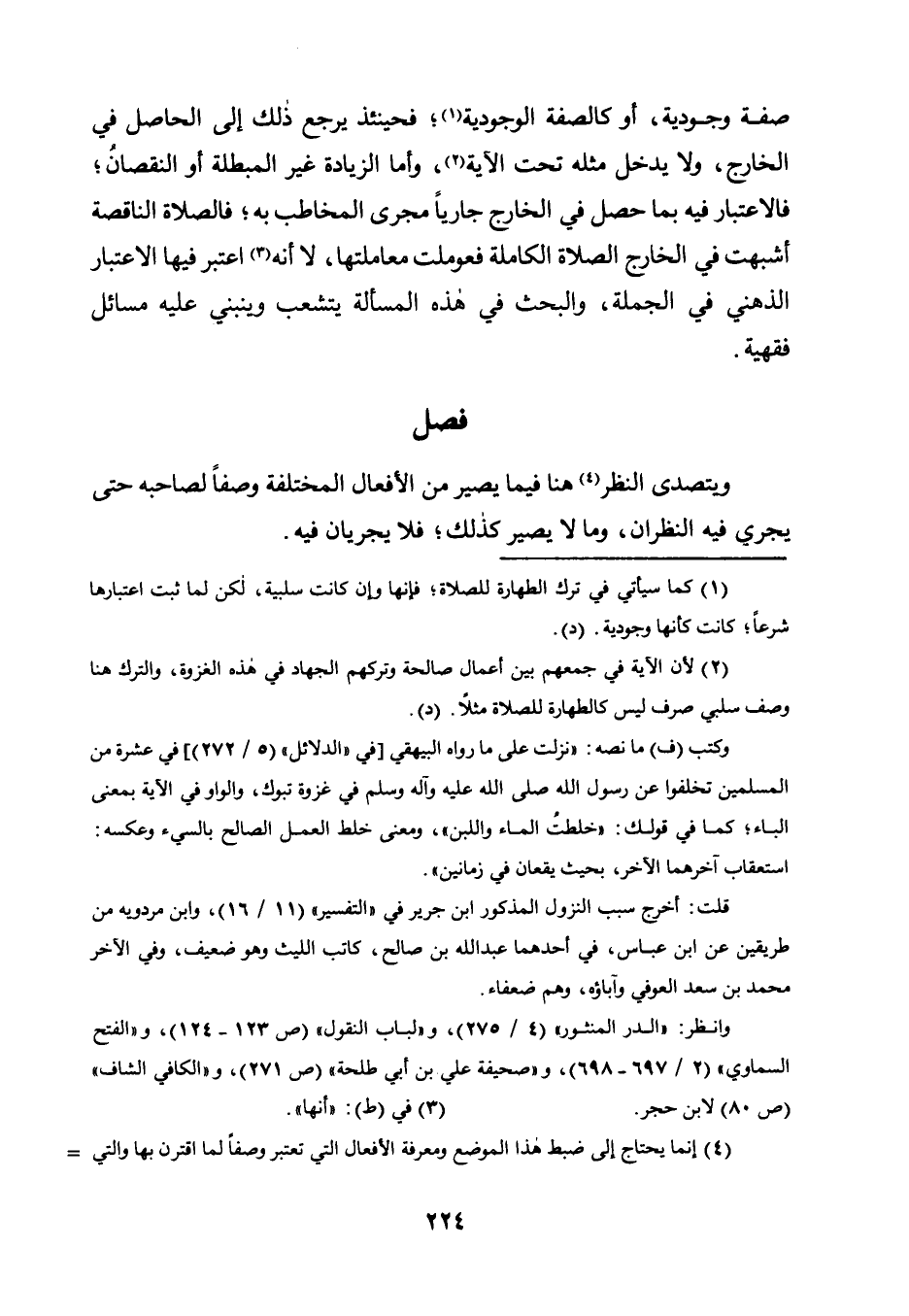 صِفَةً وُجُودِيَّةً أَوْ كَالصِّفَةِ الْوُجُودِيَّةِ1، فَحِينَئِذٍ يَرْجِعُ ذَلِكَ إِلَى الْحَاصِلِ فِي الْخَارِجِ، وَلَا يَدْخُلُ مِثْلُهُ تَحْتَ الْآيَةِ2، وَأَمَّا الزِّيَادَةُ غَيْرُ الْمُبْطِلَةِ أَوِ النُّقْصَانُ؛ فَالِاعْتِبَارُ فِيهِ بِمَا حَصَلَ فِي الْخَارِجِ جَارِيًا مَجْرَى الْمُخَاطَبِ بِهِ؛ فَالصَّلَاةُ النَّاقِصَةُ أَشْبَهَتْ فِي الْخَارِجِ الصَّلَاةَ الْكَامِلَةَ فَعُومِلَتْ مُعَامَلَتَهَا، لا أنه3 اعتبر فيها الاعتبار الذِّهْنِيُّ فِي الْجُمْلَةِ، وَالْبَحْثُ فِي هَذِهِ الْمَسْأَلَةِ يَتَشَعَّبُ وَيَنْبَنِي عَلَيْهِ مَسَائِلُ فِقْهِيَّةٌ.