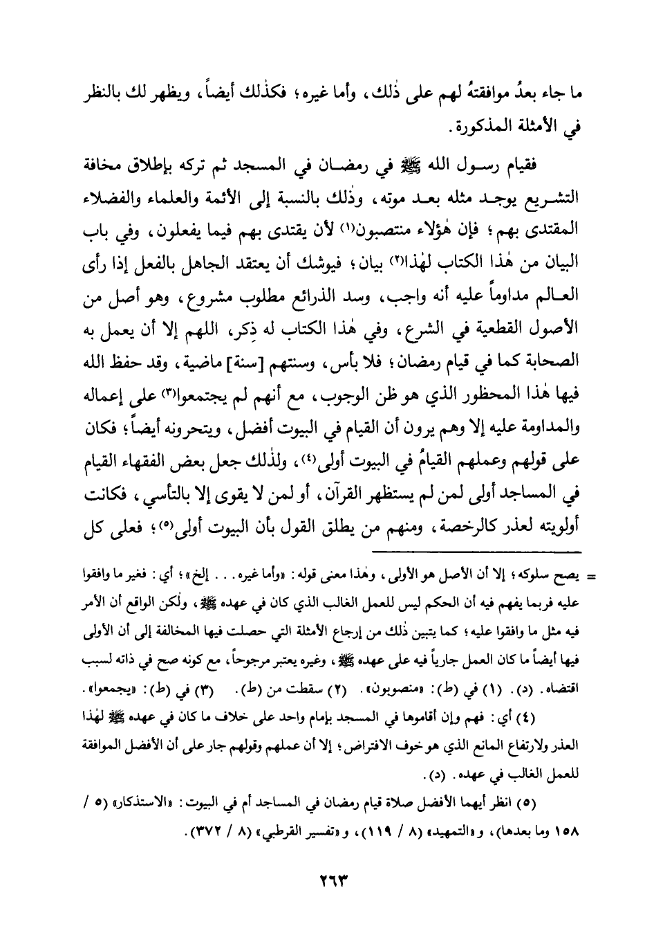 5 انظر أيهما الأفضل صلاة قيام رمضان في المساجد أم في البيوت: "الاستذكار" "5/ 158 وما بعدها"، و"التمهيد" "8/ 119"، و"تفسير القرطبي" "8/ 372".