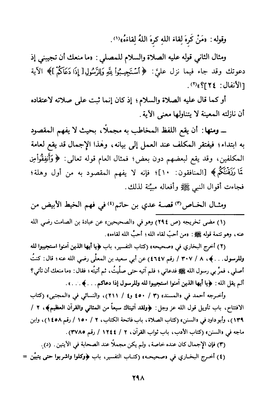 وَمِثَالُ الْخَاصِّ3 قِصَّةُ عَدِيِّ بْنِ حَاتِمٍ4 فِي فهم الخيط الأبيض من