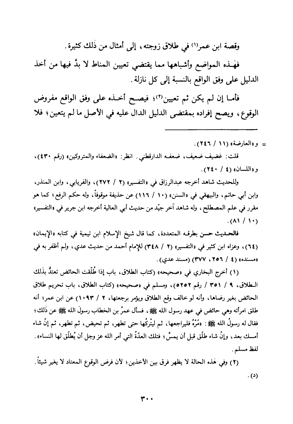 وَقِصَّةُ ابْنِ عُمَرَ1 فِي طَلَاقِ زَوْجَتِهِ، إِلَى أَمْثَالٍ مِنْ ذَلِكَ كَثِيرَةٍ.