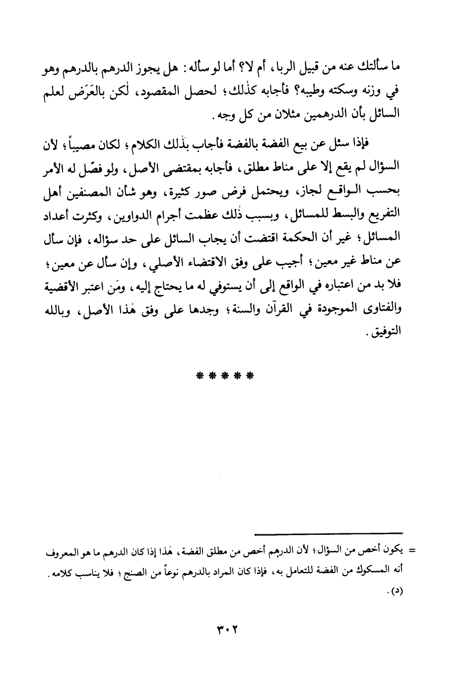 مَا سَأَلْتُكَ عَنْهُ مِنْ قَبِيلِ الرِّبَا، أَمْ لَا؟ أَمَّا لَوْ سَأَلَهُ: هَلْ يَجُوزُ الدِّرْهَمُ بِالدِّرْهَمِ وَهُوَ فِي وَزْنِهِ وَسِكَّتِهِ وَطِيبِهِ؟ فَأَجَابَهُ كَذَلِكَ؛ لَحَصَلَ الْمَقْصُودُ، لَكِنْ بِالْعَرَضِ لِعِلْمِ السَّائِلِ بِأَنَّ الدِّرْهَمَيْنِ مِثْلَانِ مِنْ كُلِّ وَجْهٍ.