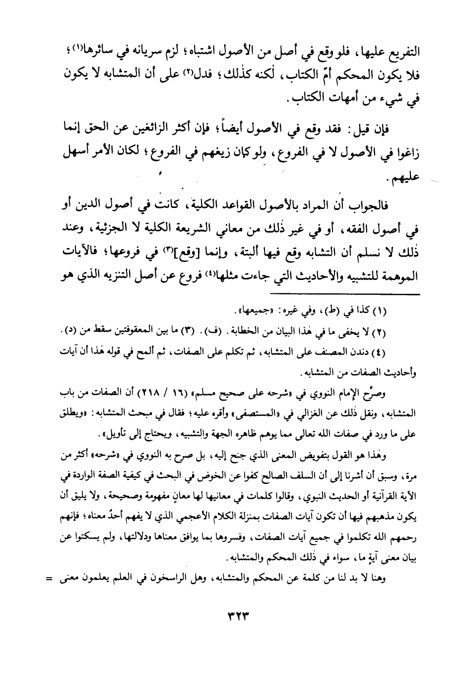 4 دندن المصنف على المتشابه، ثم تكلم على الصفات، ثم ألمح في قوله هذا أن آيات وأحاديث الصفات من المتشابه.
