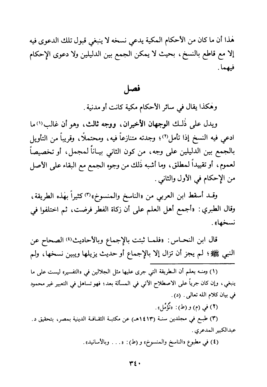 وَقَدْ أَسْقَطَ ابْنُ الْعَرَبِيِّ مِنَ "النَّاسِخِ وَالْمَنْسُوخِ"3 كَثِيرًا بِهَذِهِ الطَّرِيقَةِ، وَقَالَ الطَّبَرِيُّ: "أَجْمَعَ أَهْلُ الْعِلْمِ عَلَى أَنَّ زَكَاةَ الْفِطْرِ فُرِضَتْ، ثُمَّ اخْتَلَفُوا فِي نَسْخِهَا".