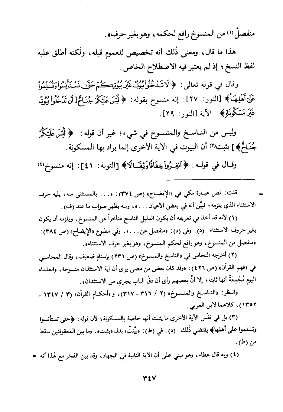 منفصل1 من الْمَنْسُوخِ رَافِعٌ لِحُكْمِهِ، وَهُوَ بِغَيْرِ حَرْفٍ".