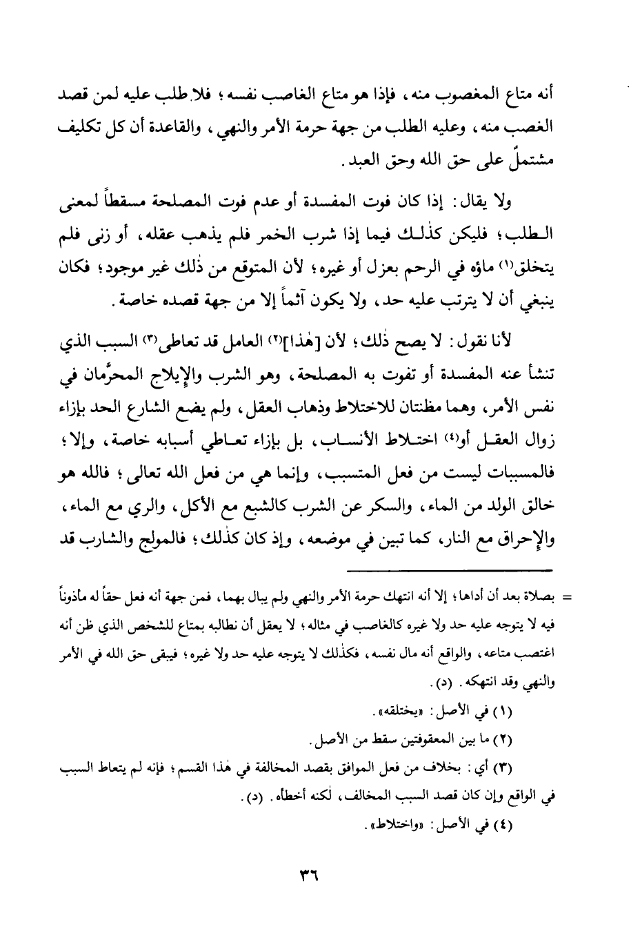 وَلَا يُقَالُ: إِذَا كَانَ فَوْتُ الْمَفْسَدَةِ أَوْ عَدَمُ فَوْتِ الْمَصْلَحَةِ مُسْقِطًا لِمَعْنَى الطَّلَبِ؛ فَلْيَكُنْ كَذَلِكَ فِيمَا إِذَا شَرِبَ الْخَمْرَ فَلَمْ يَذْهَبْ عَقْلُهُ، أَوْ زَنَى فَلَمْ يَتَخَلَّقْ1 مَاؤُهُ فِي الرَّحِمِ بِعَزْلٍ أَوْ غَيْرِهِ؛ لِأَنَّ الْمُتَوَقَّعَ مِنْ ذَلِكَ غَيْرُ مَوْجُودٍ؛ فَكَانَ يَنْبَغِي أَنْ لَا يَتَرَتَّبَ عَلَيْهِ حَدٌّ، وَلَا يَكُونَ آثِمًا إِلَّا مِنْ جِهَةِ قَصْدِهِ خَاصَّةً.