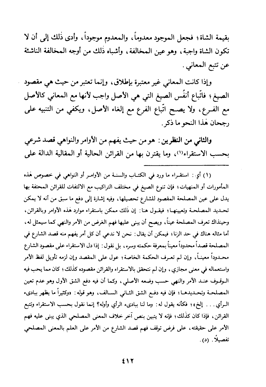 وَالثَّانِي مِنَ النَّظَرَيْنِ: هُوَ مِنْ حَيْثُ يُفْهَمُ مِنَ الْأَوَامِرِ وَالنَّوَاهِي قَصْدٌ شَرْعِيٌّ بِحَسَبِ الِاسْتِقْرَاءِ1، وَمَا يَقْتَرِنُ بِهَا مِنَ الْقَرَائِنِ الْحَالِيَّةِ أَوِ الْمَقَالِيَّةِ الدالة على