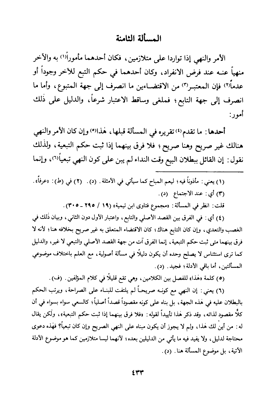 مَا تَقَدَّمَ4 تَقْرِيرُهُ فِي الْمَسْأَلَةِ قَبْلَهَا، هَذَا5 وَإِنْ كَانَ الْأَمْرُ وَالنَّهْيُ هُنَالِكَ غَيْرَ صَرِيحٍ وَهُنَا صَرِيحٌ؛ فَلَا فَرْقَ بَيْنَهُمَا إِذَا ثَبَتَ حُكْمُ التَّبَعِيَّةِ، وَلِذَلِكَ نَقُولُ: إِنَّ الْقَائِلَ بِبُطْلَانِ الْبَيْعِ وَقْتَ النِّدَاءِ لَمْ يبنَ على كون النهي تبعيًّا6، وإنما