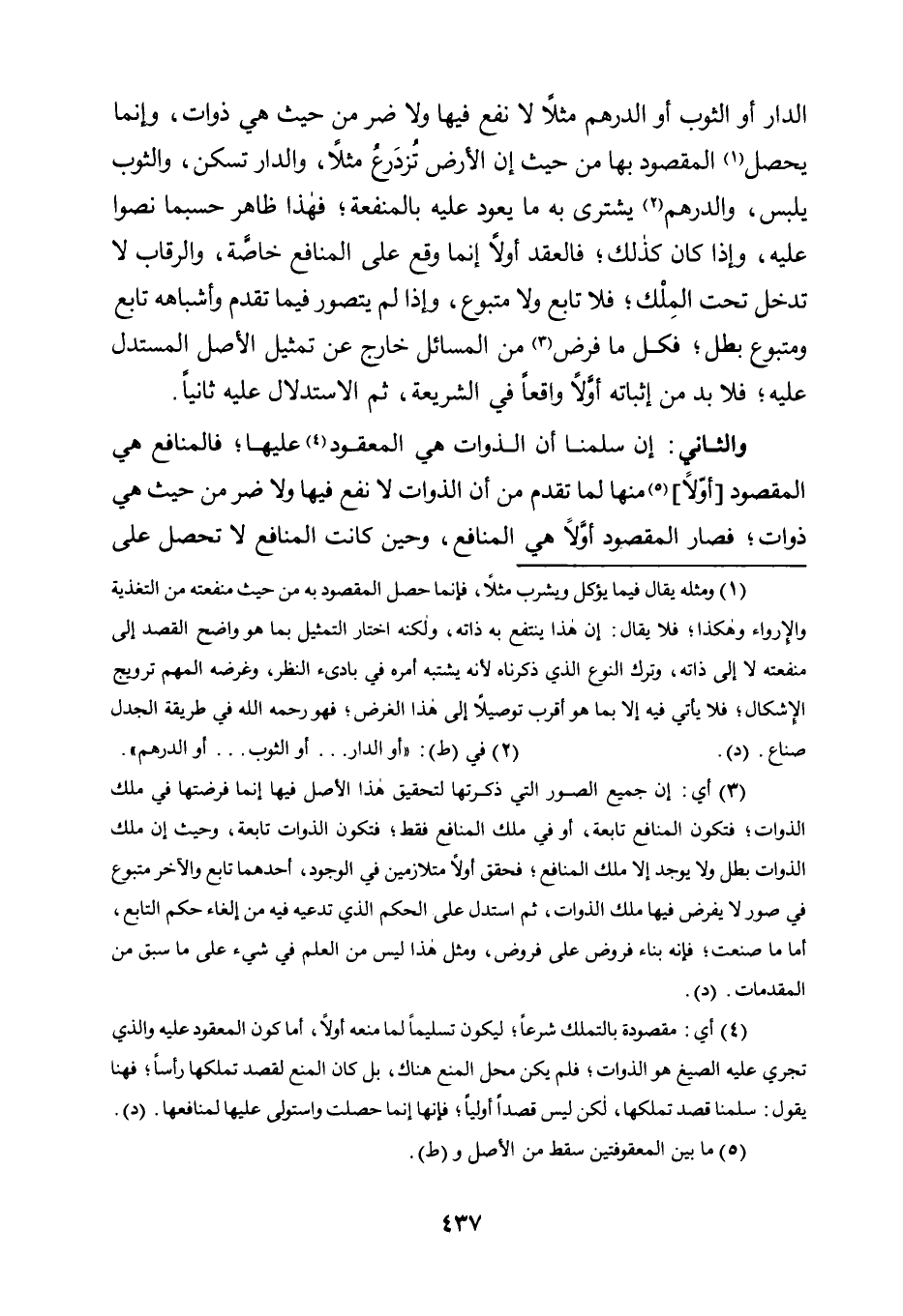 3 أي: أن جميع الصور التي ذكرتها لتحقيق هذا الأصل فيها إنما فرضتها في ملك الذوات؛ فتكون المنافع تابعة، أو في ملك المنافع فقط؛ فتكون الذوات تابعة، وحيث إن ملك الذوات بطل ولا يوجد إلا ملك المنافع؛ فحقق أولًا متلازمين في الوجود، أحدهما تابع والآخر متبوع في صور لا يفرض فيها ملك الذوات، ثم استدل على الحكم الذي تدعيه فيه من إلغاء حكم التابع، أما ما صنعت؛ فإنه بناء فروض على فروض، ومثل هذا ليس من العلم في شيء على ما سبق من المقدمات. "د".