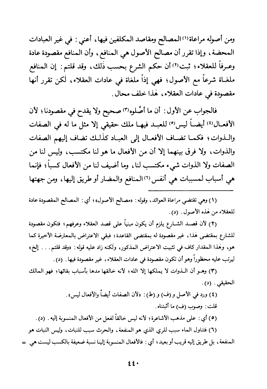 6 فتناول الماء سبب للري الذي هو المنفعة، والحرث سبب للنبات، وليس النبات هو المنفعة، بل طريق إليه قريب أو بعيد؟ أي: فالأفعال المنسوبة إلينا نسبة ضعيفة بالكسب ليست هي المنافع، بل هي أسباب لها قريبة أو بعيدة؛ فآل الأمر إلى أنه لا فرق بين المنافع والذوات في أنها ليست مقدورة لنا، فليس ملكنا لها ملكًا حقيقيًّا ولا كسبيًّا، وقد سلمتم نسبة المنافع لنا؛ فسلموا نسبة ما كان مثلها وهو الذوات إلينا بلا فارق، على المعنى الذي يليق بنا في الأمرين معًا. "د".