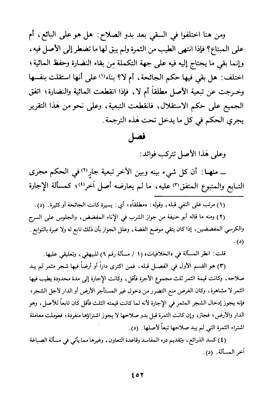 وَعَلَى هَذَا الْأَصْلِ تَتَرَكَّبُ فَوَائِدُ: