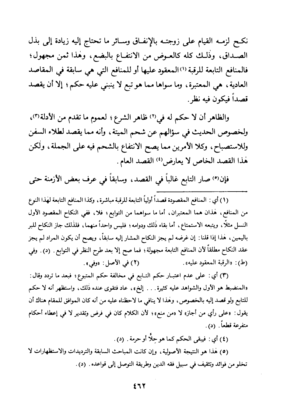1 أي: المنافع المقصودة قصدًا أوليًّا التابعة للرقبة مباشرة، وكذا المنافع التابعة لهذا النوع من المنافع، هذان هما المعتبران، أما ما سواهما من التوابع؛ فلا، ففي النكاح المقصود الأول النسل مثلًا، ويتبعه الاستمتاع، أما بقاء ذلك ودوامه؛ فليس واحدًا منهما، فلذلك جاز النكاح للبر باليمين، هذا إذا قلنا: إن غرضه من النكاح المشار إليه سابقًا، ويصح أن يكون المراد لم يجز عقد النكاح مطلقًا لأن المنافع التابعة مجهولة؛ فما صح إلا بعد طرح النظر في التوابع. "د". وفي "ط": "الرقبة المعقود عليه".