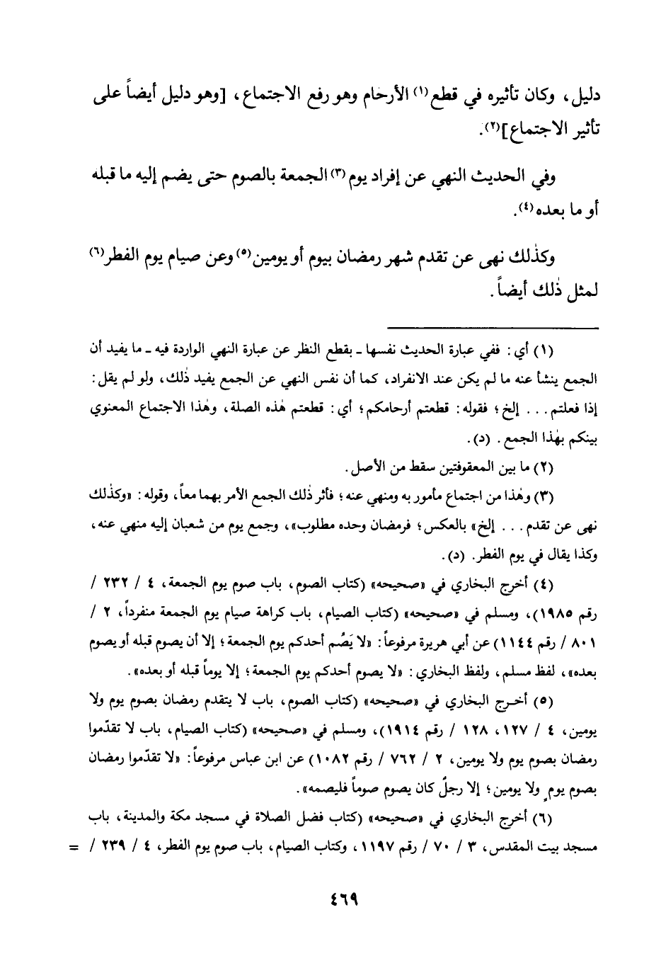 وَكَذَلِكَ نَهَى عَنْ تَقَدُّمِ شَهْرِ رَمَضَانَ بِيَوْمٍ أَوْ يَوْمَيْنِ5 وَعَنْ صِيَامِ يوم الفطر6 لمثل ذلك أيضًا.