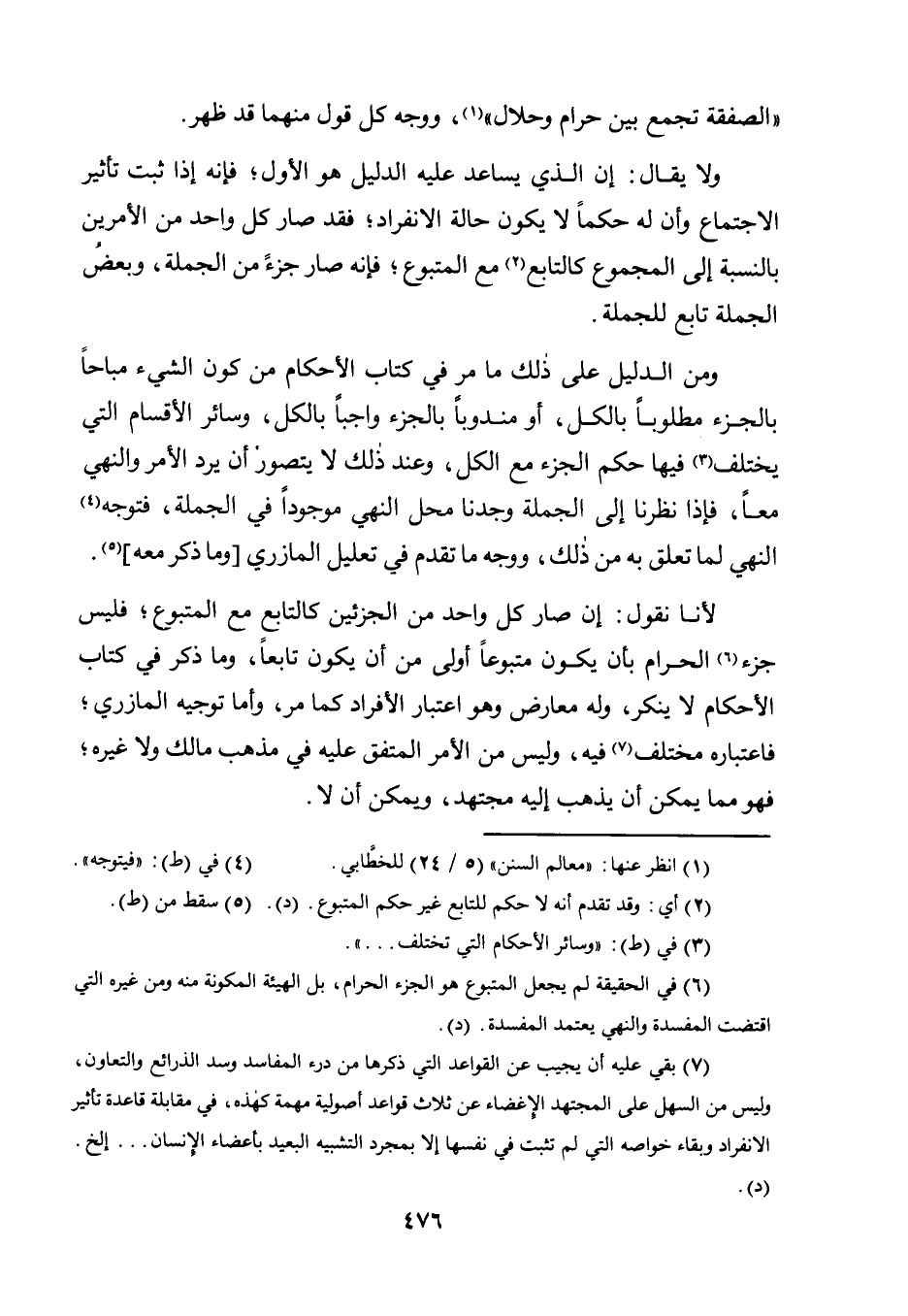 6 في الحقيقة لم يجعل المتبوع هو الجزء الحرام، بل الهيئة المكونة منه ومن غيره التي اقتضت المفسدة والنهي يعتمد المفسدة. "د".