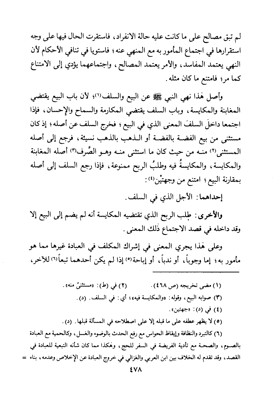 6 كالتبرد والنظافة وإيقاظ الحواس مع رفع الحدث بالوضوء والغسل، وكالحمية مع العبادة بالصوم، والصحة مع تأدية الفريضة في السفر للحج، وهكذا مما كان شأنه التبعية للعبادة في القصد، وقد تقدم له الخلاف بين ابن العربي والغزالي في خروج العبادة عن الإخلاص وعدمه، بناء =