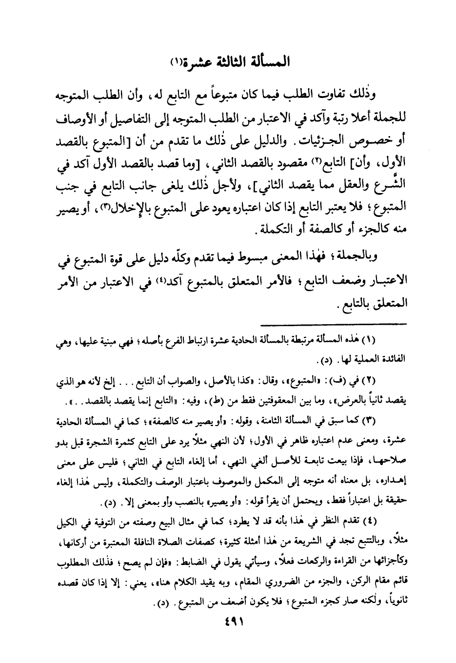 وَذَلِكَ تَفَاوُتُ الطَّلَبِ فِيمَا كَانَ مَتْبُوعًا مَعَ التَّابِعِ لَهُ، وَأَنَّ الطَّلَبَ المتوجه للجملة أعلا رُتْبَةً وَآكَدُ فِي الِاعْتِبَارِ مِنَ الطَّلَبِ الْمُتَوَجِّهِ إِلَى التَّفَاصِيلِ أَوِ الْأَوْصَافِ أَوْ خُصُوصِ الْجُزْئِيَّاتِ. وَالدَّلِيلُ عَلَى ذَلِكَ مَا تَقَدَّمَ مِنْ أَنَّ [الْمَتْبُوعَ بِالْقَصْدِ الْأَوَّلِ، وَأَنَّ] التَّابِعَ2 مَقْصُودٌ بِالْقَصْدِ الثَّانِي، [وَمَا قُصِدَ بِالْقَصْدِ الْأَوَّلِ آكَدُ فِي الشَّرع وَالْعَقْلِ مِمَّا يَقْصِدُ الثَّانِي] ، وَلِأَجْلِ ذَلِكَ يُلْغَى جَانِبُ التَّابِعِ فِي جَنْبِ الْمَتْبُوعِ، فَلَا يُعْتَبَرُ التَّابِعُ إِذَا كَانَ اعْتِبَارُهُ يَعُودُ عَلَى الْمَتْبُوعِ بِالْإِخْلَالِ3، أَوْ يَصِيرُ مِنْهُ كَالْجُزْءِ أَوْ كَالصِّفَةِ أَوِ التَّكْمِلَةِ.