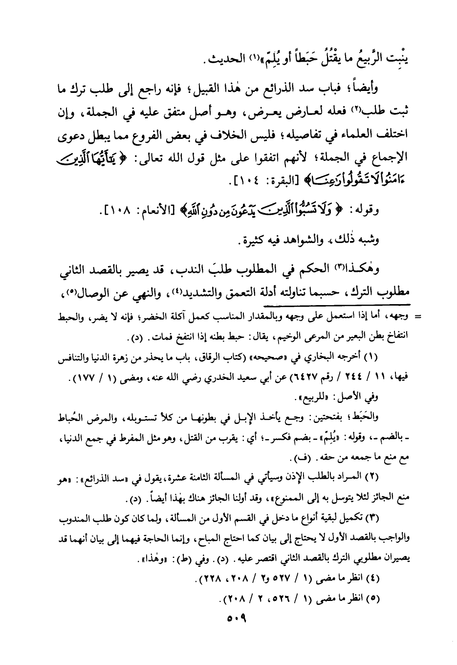 2 المراد بالطلب الإذن وسيأتي في المسألة الثامنة عشرة، يقول في "سد الذرائع": "هو مَنَعَ الْجَائِزَ لِئَلَّا يَتَوَسَّلَ بِهِ إِلَى الْمَمْنُوعِ"، وقد أولنا الجائز هناك بهذا أيضًا. "د".