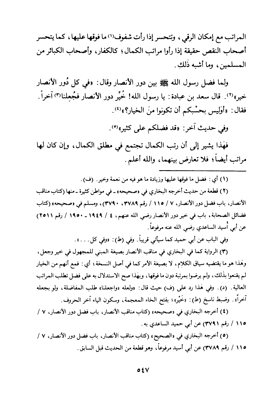 فهذا يشير إلى رُتَبَ الْكَمَالِ تَجْتَمِعُ فِي مُطْلَقِ الْكَمَالِ، وَإِنْ كَانَ لَهَا مَرَاتِبُ أَيْضًا؛ فَلَا تَعَارُضَ بَيْنَهُمَا، والله أعلم.