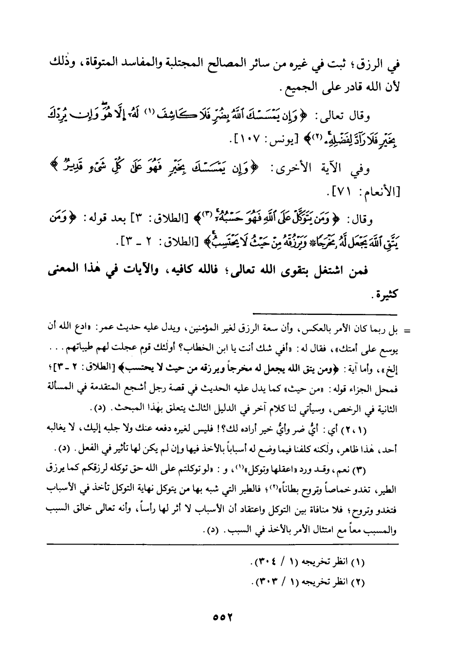 فِي الرِّزْقِ؛ ثَبَتَ فِي غَيْرِهِ مِنْ سَائِرِ الْمَصَالِحِ الْمُجْتَلَبَةِ وَالْمَفَاسِدِ الْمُتَوَقَّاةِ، وَذَلِكَ لِأَنَّ اللَّهَ قَادِرٌ عَلَى الْجَمِيعِ.