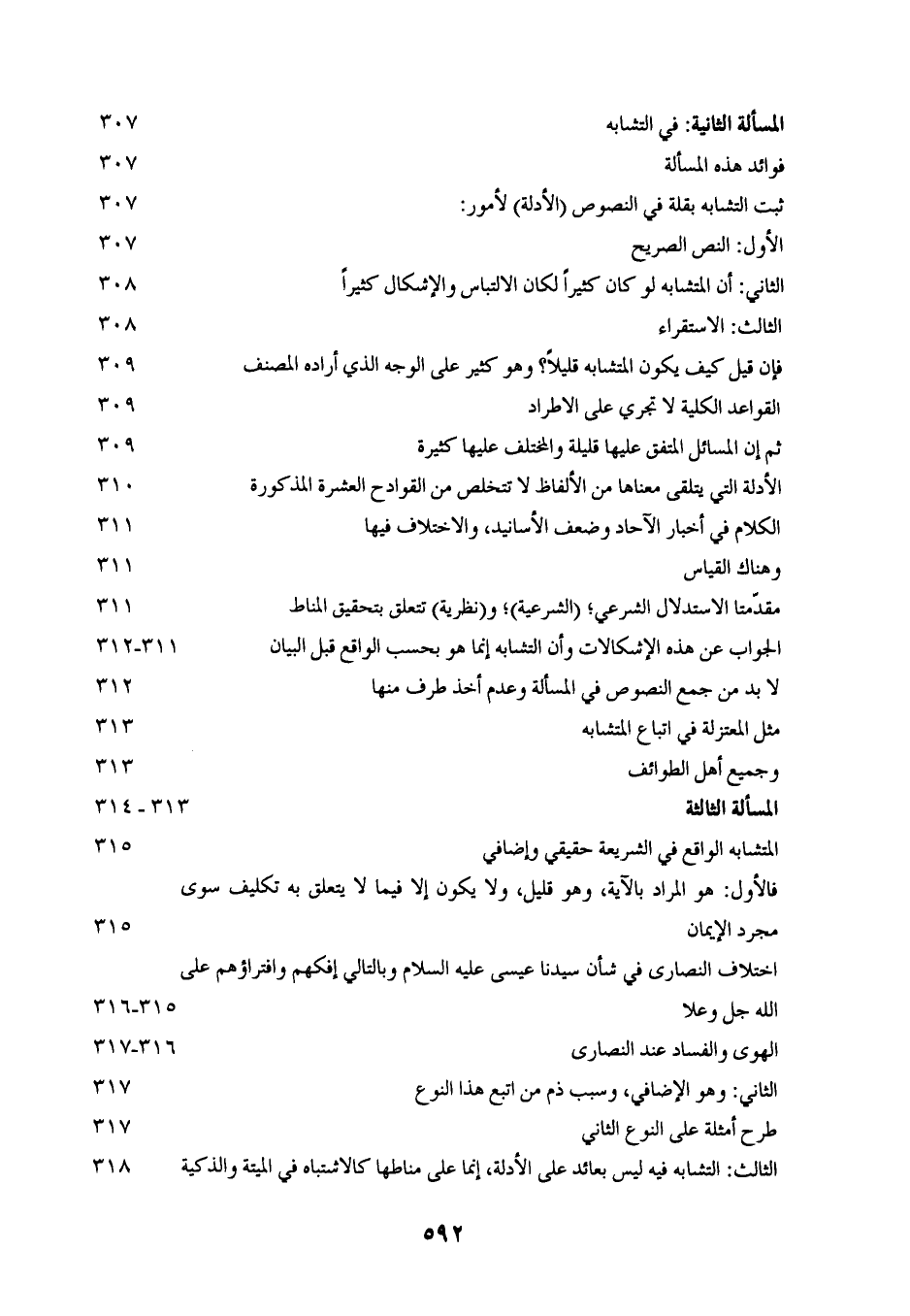 الثاني: أَنَّ الْمُتَشَابِهَ لَوْ كَانَ كَثِيرًا لَكَانَ الِالْتِبَاسُ والإشكال كثيرا 308