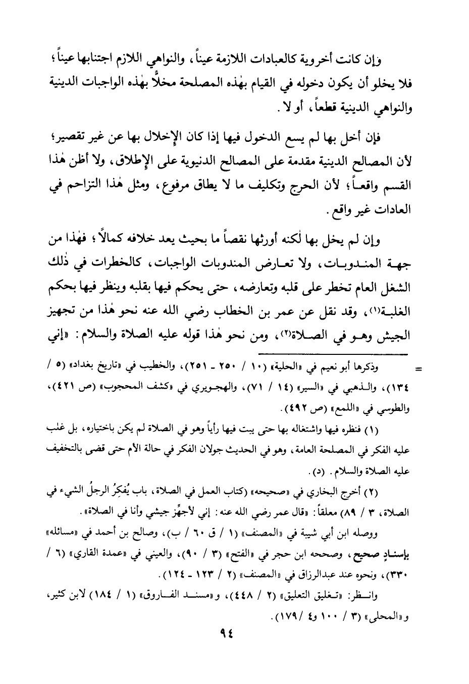 2 أخرج البخاري في "صحيحه" كتاب العمل في الصلاة، باب يفكر الرجل الشيء في الصلاة 3/ 89" معلقا: "قال عمر رضي الله عنه: إني لأجهز جيشي وأنا في الصلاة".